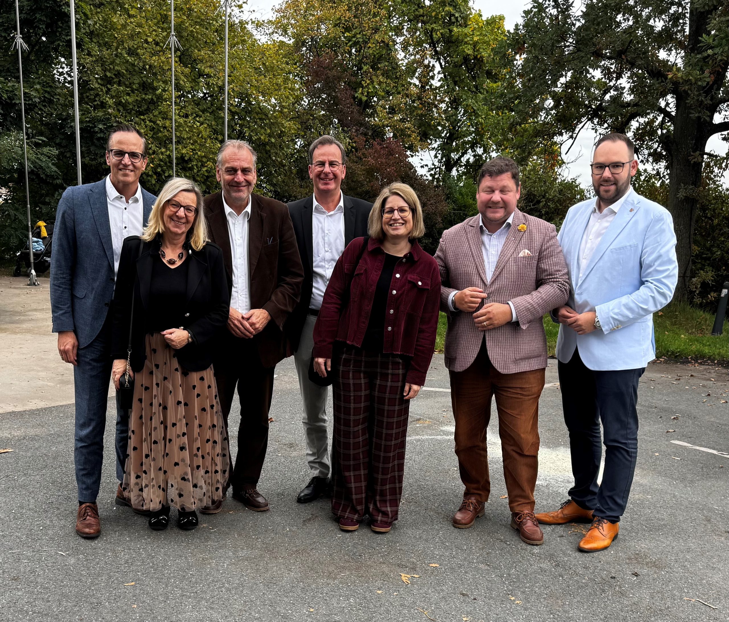 Vom 11. bis 13. Oktober empfing die Gemeinde Hainburg eine Delegation aus der österreichischen Partnerstadt Trumau. Bürgermeister Andreas Kollross reiste gemeinsam mit den Gemeinderäten Markus Artmann, Andrea Michaela Baier und Birgit Schultschik nach Hainburg, um die partnerschaftlichen Beziehungen weiter zu vertiefen. Im Mittelpunkt des Besuchs standen der persönliche Austausch und die Begegnung auf kommunaler Ebene. Nach einem offiziellen Empfang im Hainburger Rathaus durch Bürgermeister Christian Spahn und den Ersten Beigeordneten Lukas Buhl entwickelte sich ein lebhafter und offener Dialog über aktuelle Themen der Gemeindepolitik – von Bürgerbeteiligung über Nachhaltigkeit bis hin zu Fragen der regionalen Entwicklung. Dabei wurde deutlich, dass Hainburg und Trumau nicht nur partnerschaftlich, sondern auch in vielen ihrer Herausforderungen und Zielsetzungen eng verbunden sind. Am Sonntagmorgen besuchte die Delegation die Hainstädter Kerb, wo bei bester Stimmung gemeinsam gefeiert wurde. Ein weiterer Höhepunkt war die Führung durch die Privatbrauerei Glaab in Seligenstadt, bei der die Gäste spannende Einblicke in die traditionelle Braukunst der Region erhielten. Der Abend fand bei einem geselligen gemeinsamen Essen seinen Ausklang, das Raum für viele persönliche Gespräche bot.
