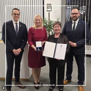 Monika Schulz aus Hainburg ist für ihr jahrzehntelanges ehrenamtliches Engagement in der Hospiz- und Palliativarbeit mit dem Hessischen Verdienstorden am Bande ausgezeichnet worden. In einer Feierstunde in Wiesbaden würdigte Gesundheitsministerin Diana Stolz in ihrer Laudatio den außergewöhnlichen Einsatz von Frau Schulz für schwerkranke und sterbende Menschen sowie deren Angehörige.