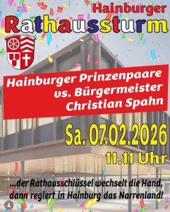 Die Rathauserstürmung beginnt am Samstag, den 07.02.2026 um 11:11h und wir freuen uns euch dort begrüßen zu dürfen 😊🤩